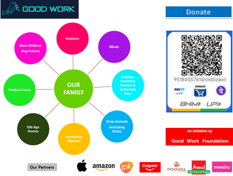 Good Work Foundation has collaborated with so many NGOs who are working for orphans and blinds.